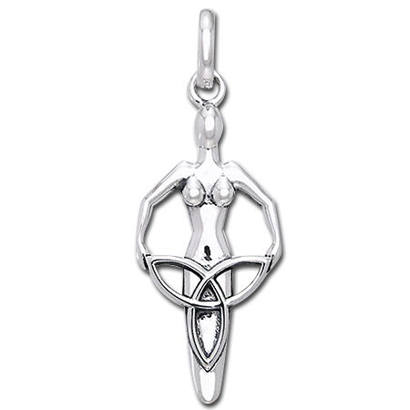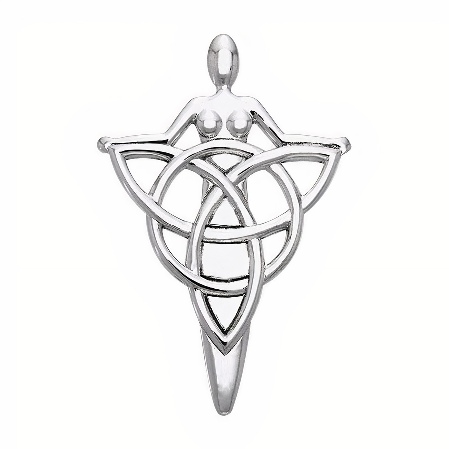 Vedhæng Gudinde Med Triquetra er et smukt og symbolsk smykke, der repræsenterer treenighedssymbolet. Dette vedhæng har en størrelse på 45 mm og er ideelt til dem, der ønsker at bære et spirituelt symbol tæt på hjertet.